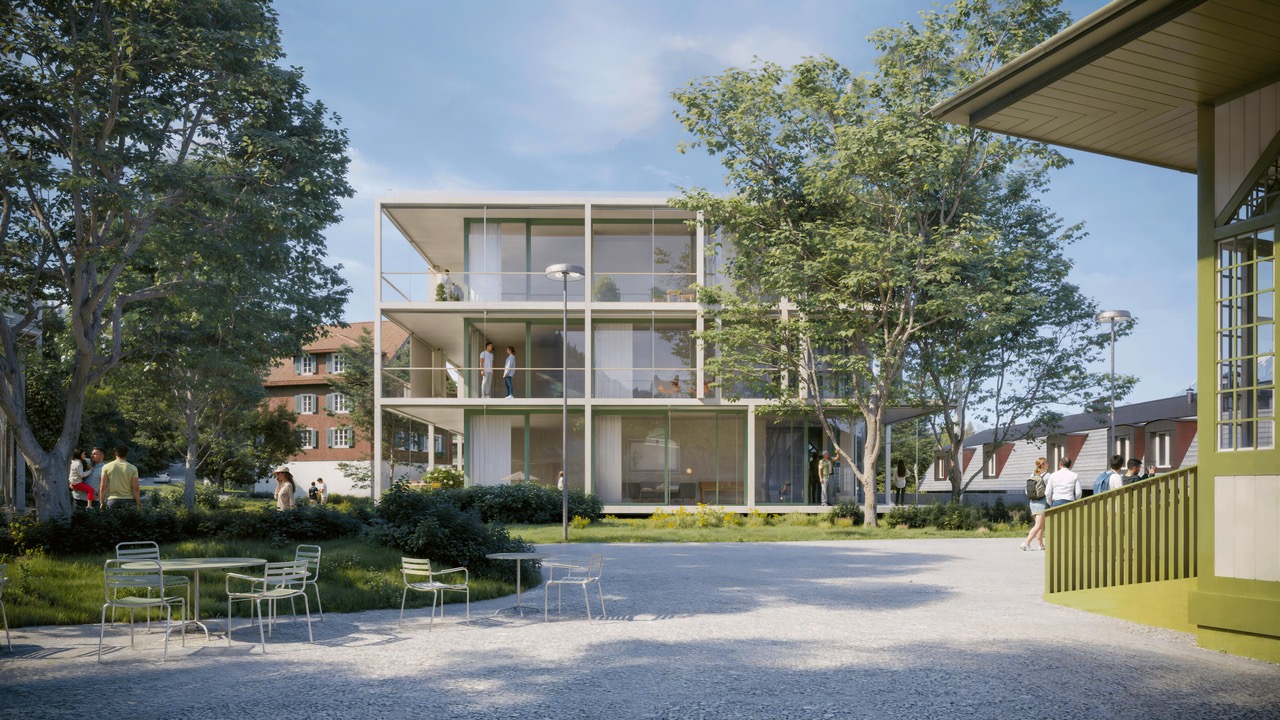 - Durch die neue Anordnung passen sich der Punkt- und Längsbau besser in die Topografie ein. Sie sind merklich niedriger als der ursprünglich geplante Baukörper. Ausserdem wird das oberste Geschoss zurückversetzt, wodurch die Hauptfassaden neu fünfgeschossig in Erscheinung treten.